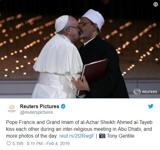 В период с 3 по 5 февраля 2019 года в столице ОАЭ Абу-Даби прошла международная конференция «Человеческое братство», посвященная межрелигиозному диалогу, веротерпимости, противодействию радикализму и терроризму. Двухдневная Глобальная конференция была организована Советом старейшин мусульман и случайно, наверное, совпала с визитом в Абу-Даби Папы Римского Франциска.