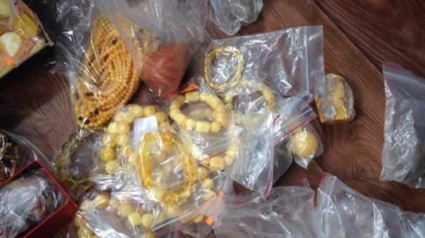В рамках начатого уголовного производства во время санкционированных обысков в производственном комплексе сотрудники Управлений СБУ в Житомирской и Одесской областях 13 февраля обнаружили оборудование для огранки камня, обработанные камни и почти пятнадцать килограммов уже готовых ювелирных изделий из янтаря, "черную бухгалтерию" и крупную сумму наличных. Из складских помещений правоохранители изъяли почти шесть тонн янтаря-сырца, расфасованного на фракции и отобранного для огранки, а также более полтонны обработанного камня.