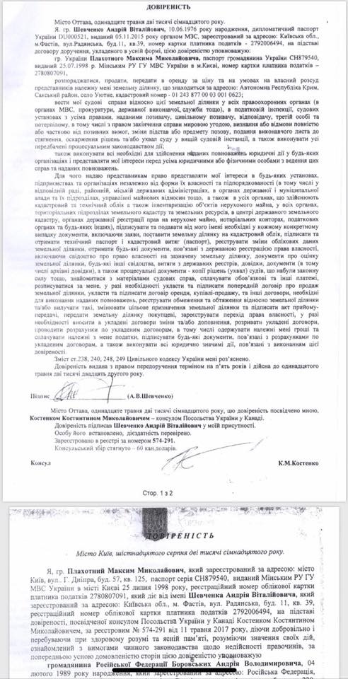 Ниже по ссылке я публикую доверенность, которой Посол Шевченко прямо уполномочил своего помощника продать именно эту землю.