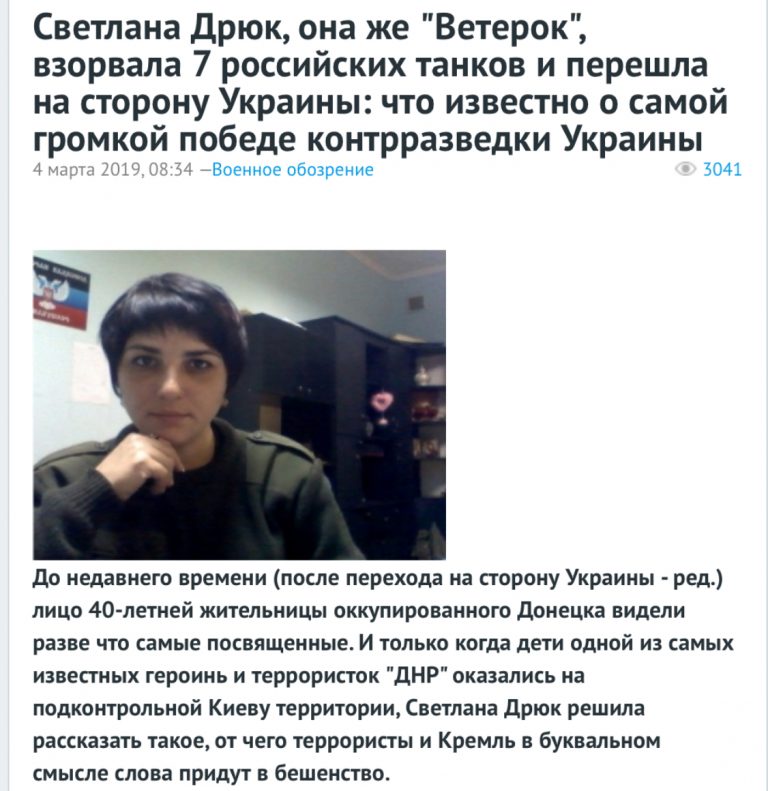 Вы наверняка уже слышали про грандиозную перемогу, которая заключается в том, что командир танкового экипажа ДНР Светлана Дрюк с позывным «Ветерок» перешла на сторону Украины и теперь сотрудничает с украинской контрразведкой.