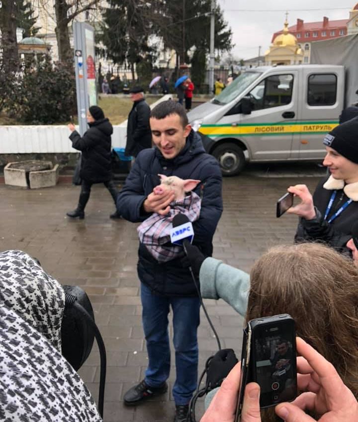 В Луцке полиция задержала свиней, встречавших Порошенко | Митинги Порошенко перестали транслировать из-за протестов нациков