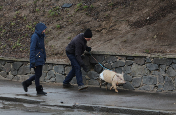 Также отмечается, что по улицам города на поводке водят еще одного “свинарчука”, который хрюкает и визжит.