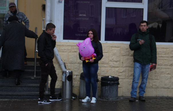 Некоторые местные жители пришли с надувной Свинкой Пеппой – персонажем британского мультсериала.
