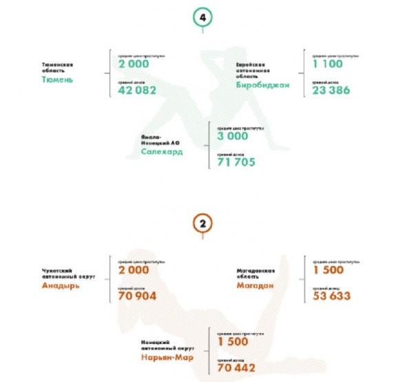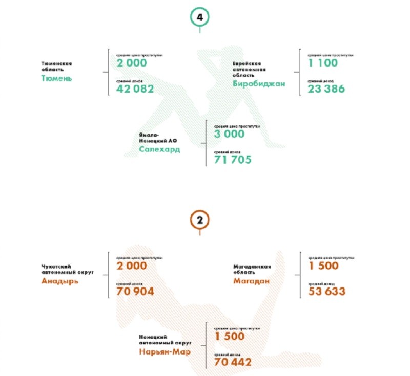 Третье место. В России появился новый индекс, определяющий уровень жизни граждан. Так называемый индекс доступности, который определяет, сколько процентов дохода составляет вызов секс-работниц в разных регионах России. Интересный показатель. Оказывается, хуже всех, согласно данному показателю, живут жители Ингушетии. Вызов гражданки с пониженной социальной ответственностью обойдется здесь в 17 процентов дохода местного жителя. Самыми «богатыми» оказались жители Ненецкого автономного округа. Здесь за «час любви» местный житель должен отдать всего 2 процента своего месячного дохода. Моя родная Ростовская область находиться среди «середнячков». За любовь и ласку придется выложить 10 процентов своего месячного дохода. Дорого, блин. Аж как-то проникся завистью к жителям Ненецкого автономного округа и Магаданской области. Да, условия для жизни у них менее благоприятные. Зато с культурным досугом проблем нет! И с бескультурным тоже…