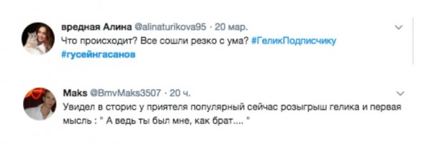 Однако многие юзеры не верили, что конкурс проводится честно и победитель будет не подставной. Розыгрыши, проводимые блогерами, вещь не редкая. И это достаточно действенный способ привлечь подписчиков. Так, на "инстаграм" Гусейна подписалось 2 млн за сутки. Поэтому появилась информация о том, что якобы Гасанов отдаст машину не случайному счастливчику, а своему знакомому. И блогеру пришлось оправдываться.