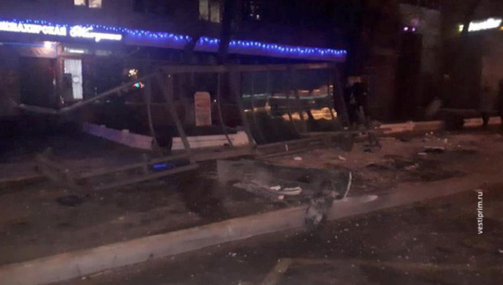 Во Владивостоке машина врезалась в остановку, пострадали люди