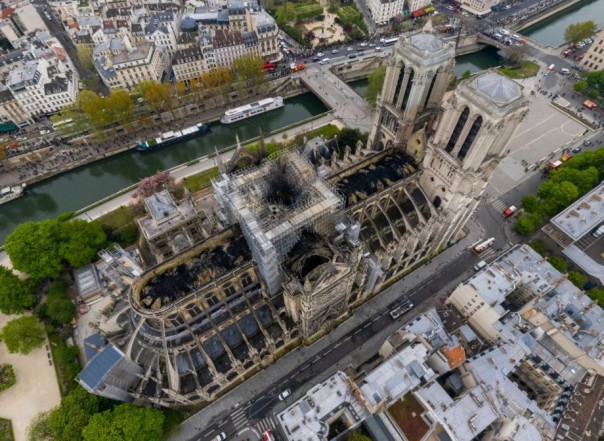 Charlie Hebdo выпустил обложку с горящим на голове Макрона Нотр-Дамом | Фото Нотр-Дама с высоты квадракоптера