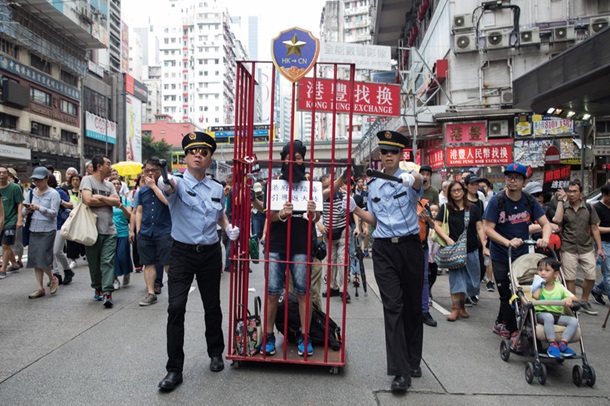 Многие из участников акции несли зонтики как символ сопротивления, использовавшийся во время протестов 2014 года. Протестные настроения подогрел арест в минувшую среду четырех активистов на срок до 16 месяцев.