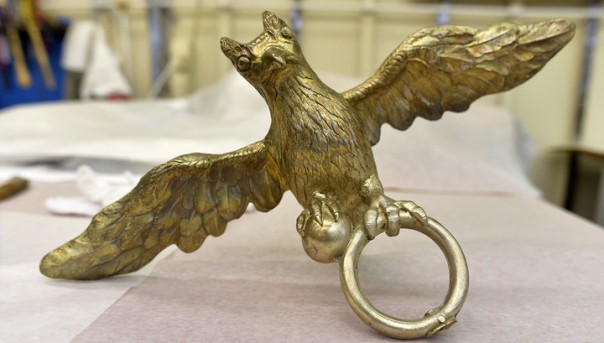 Зато сейчас есть возможность, применяя новейшие технологии, вырастить все элементы этого уникального экспоната. Самые маленькие тоже. Например, гвозди и винты. В лабораторию имеется специальное оборудование, на котором можно создать 3D модель, потом форму, потом точную копию той или иной детали, сохраняя все детали оригинала, вплоть до сколов и царапин. Во время реставрации уже восстановлено множество деталей, которые были повреждены, погнуты, сломаны. Это элементы крепежа, которые больше всего пострадали при многочисленных сборках и разборках экспоната (в 20-ые годы, во время эвакуации) Если делать вручную, может уйти до трех дней рабочего времени на изготовление одного винта или гвоздя, а с помощью новой техники можно восстановить десятки, иногда сотни элементов за один день. Впечатляет!