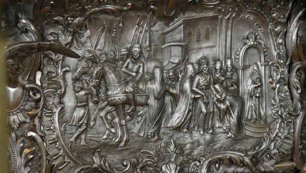 Итак, Елизавета Петровна решает, что рака, в которой находятся мощи Александра Невского, недостаточно хороша и богата. Лучше сделать новую, серебряную. Для работы над проектом был выбран придворный портретист Георг Христоф Грот. Резчику Ивану Шталмееру было поручено изготовление деревянной модели в натуральную величину. Работами руководил советник монетной канцелярии Иван Шлатер. Барельефы со сценами из жизни князя на стенки саркофага выбивались по эскизам Якоба Штелина.