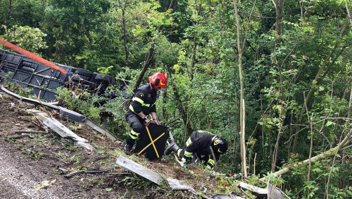 ДТП произошло около девяти часов утра 22 мая на отрезке трассы между городками Монтериджони и Бадессе. Причина аварии пока остается неизвестной, водителя автобуса, в салоне которого находились около 60 туристов из России, Грузии, Армении и Казахстана, проверили на алкоголь, но результаты пока не обнародовали. Не исключено, что мужчина мог уснуть за рулем или не справился с управлением на мокрой после дождя дороге.