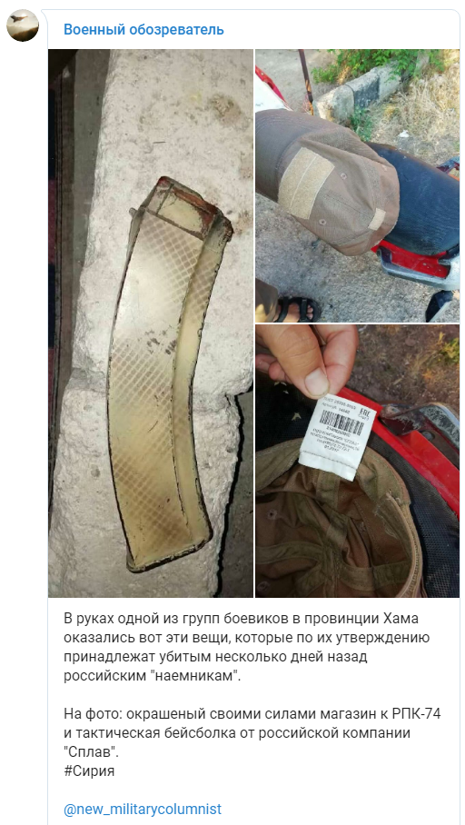 В качестве неких доказательств были представлены фрагменты униформы носимой российскими военнослужащими, в частности, речь идёт о тактической бейсболке, на которой значится наименование производителя из Москвы (ООО «Сплав»), что, впрочем, не является прямым доказательством гибели российского военного в Сирии.