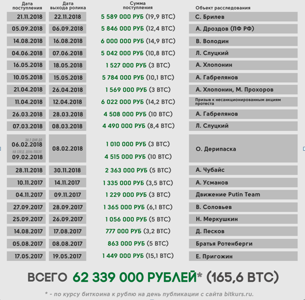 По заверениям Навального, с помощью народной поддержки он собрал с декабря 2016 года по март 2018 года 372 миллиона 775 тысяч рублей. На самом деле поступления были крупные, а народные донаты были ширмой, прикрывающей финансирование фонда Навального Западными структурами через платформу Blockchain.com.