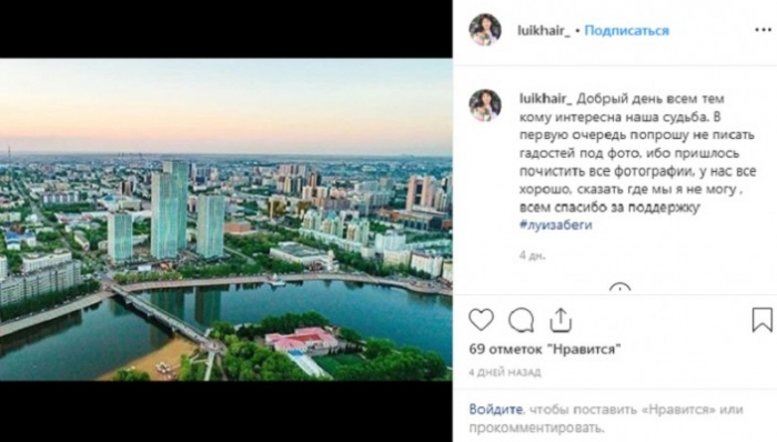 Со дня похищения прошло почти две недели. Предприимчивую кассиршу, ее мужа и двоих маленьких детей до сих пор не нашли. Более того, 5 июня в инстаграме появился аккаунт от имени Луизы Хайруллиной. Его подлинность не подтверждена и на данный момент он недоступен, однако журналисты успели сделать скриншот.