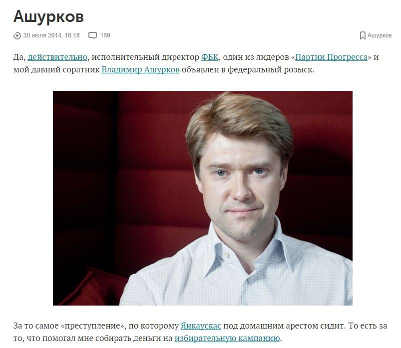 Кстати и покровитель Ашуркова Навальный на своем сайте признается, за что исполнительный директор ФБК объявлен в федеральный розыск:
