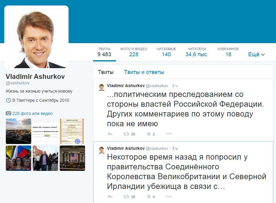 Исполнительный директор «Фонда борьбы с коррупцией» и соратник Навального Владимир Ашурков попросил убежища в Великобритании и заявил английским властям, что боится ареста и пыток.