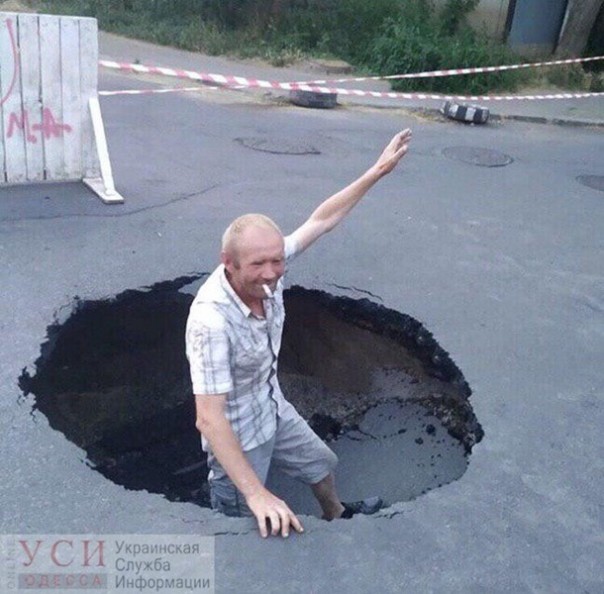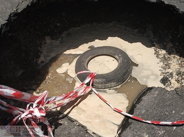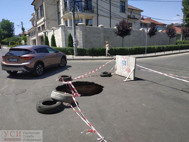 В Одессе на углу улицы Каманина и Аркадийского переулка. Прямо посреди проезжей части образовался провал диаметром около метра и глубиной в полтора, сообщает Украинская служба информации.