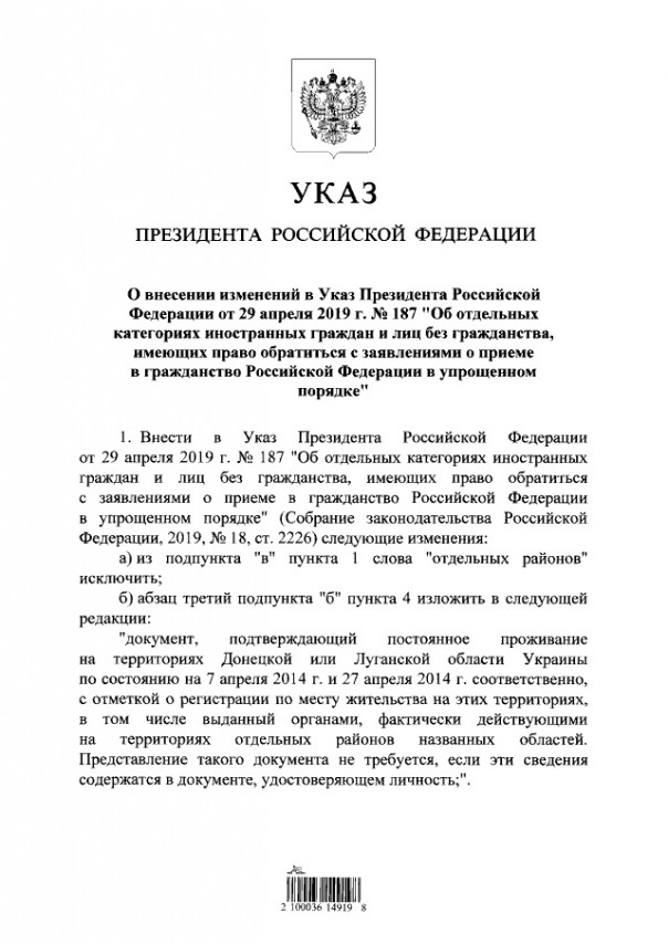 Так, согласно новой редакции указа, право обратиться с заявлением о приеме в гражданство России в упрощенном порядке предоставляется: