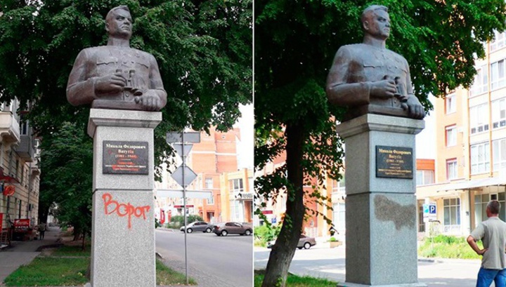 Вандалы неоднократно обливали краской памятники генералу Ватутину в разных городах Украины, в том числе в Полтаве. А в сумском селе Каменка в прошлом году памятник Ватутину был похищен. Это сделали радикалы из ультраправой украинской организации "Рассвет".