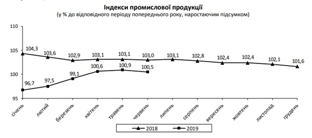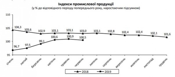 В июне 2019 года объемы промышленного производства по сравнению с аналогичным месяцем прошлого года сократились на 2,3%. Об этом сообщает Государственная служба статистики Украины во вторник, 23 июля.