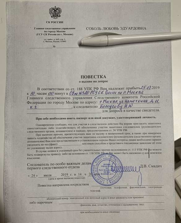 О полученных повестках сообщили, в частности, Дмитрий Гудков и незарегистрированная в качестве кандидата в Мосгордуму юрист ФБК Любовь Соболь.