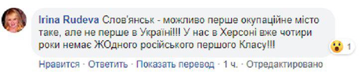 «Славянск – возможно первый оккупационный город такой, но не первый в Украине! У нас в Херсоне уже четыре года нет ни одного российского первого класса!», – написала Рудева. Источник