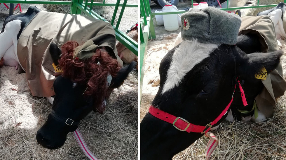 Посетитель Свенской ярмарки в Брянске Александр Коломейцев был возмущён, что коров на ней нарядили в форму Советской армии. Бурёнок в шапках и пилотках с советскими кокардами, накрытых гимнастёрками, он снял на видео.