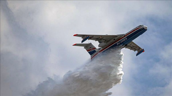 Взлетевший следом самолет-амфибия Бе-200 отработал маневры по тушению пожара. Этот самолет ранее был протестирован министром сельского и лесного хозяйства Турции в ходе посещения Таганрога.