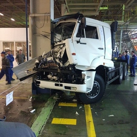 ДТП на заводе КамАЗ: грузовик съехал с конвейера и врезался в сваю