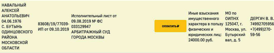 Судебные приставы взыщут с Навального 24 тысячи рублей