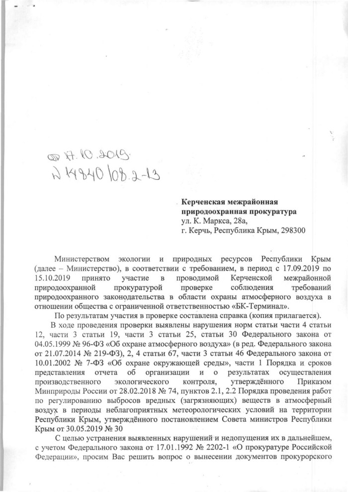 Люди неоднократно обращались в прокуратуру, но раньше их никто не слышал. До недавнего времени проблема всячески замалчивалась, но после огласки на уровне СМИ, Сергей Аксёнов поручил создать межведомственную комиссию для разрешения экологической ситуации в Ленино. В октябре 2019 года, районной администрацией была создана инициативная группа представителей общественности для мониторинга деятельности ООО «БК-Терминал».