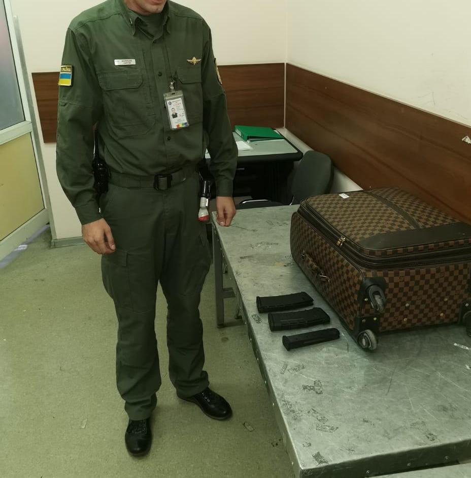 Составляющие к оружию изъяты. За попытку перевезти через государственную границу Украины с нарушением установленного порядка опасные предметы лицо передано сотрудникам полиции. Источник