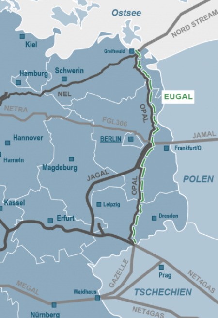 В GASCADE Gastransport GmbH отмечали, что газопровод Eugal не попадет под ограничения европейского регулирования, как это произошло с Opal, сухопутным продолжением «Северного потока».