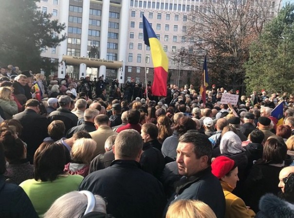 Пока депутаты голосовали, у здания парламента собрался немногочисленный митинг сторонников Санду. Они слушали ее выступление, обвиняя социалистов и президента Игоря Додона в том, что он мешает работать «единственной надежде народа».