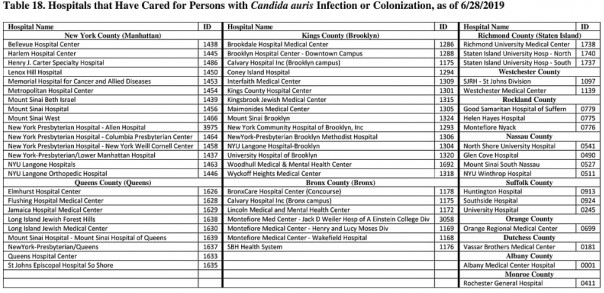 Публикуя данные о больницах и домах престарелых, официальные лица штата Нью-Йорк призвали пациентов не избегать посещения медицинских учреждений только потому, что там лечили пациентов C. auris. В то же время, они сказали, что инфекция распространился настолько быстро, что больницы и дома престарелых должны признать ее присутствие.