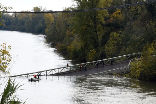 На юге Франции в коммуне Мирпуа-сюр-Тарн, что в 30 километрах от Тулузы обрушился 155-метровый подвесной автомобильный мост через реку Тарн. Погибла 15-летняя девушка, еще несколько человек пропали без вести, сообщает Le Figaro в понедельник, 18 ноября.