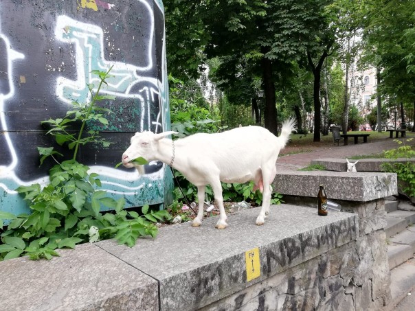 Пейзажи европейской столицы. У МИД Украины в Киеве пасутся козы