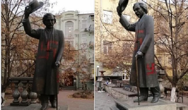 В Киеве неизвестные вандалы осквернили памятник знаменитому еврейскому писателю Шолом-Алейхему.