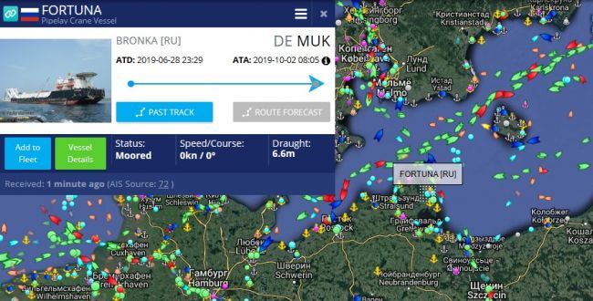 Также в Балтийском море размещается трубоукладочная баржа Fortuna АО «Межрегионтрубопроводстрой». C октября она размещается в немецком порту Мукран, откуда отгружают трубы для «Северного потока-2».