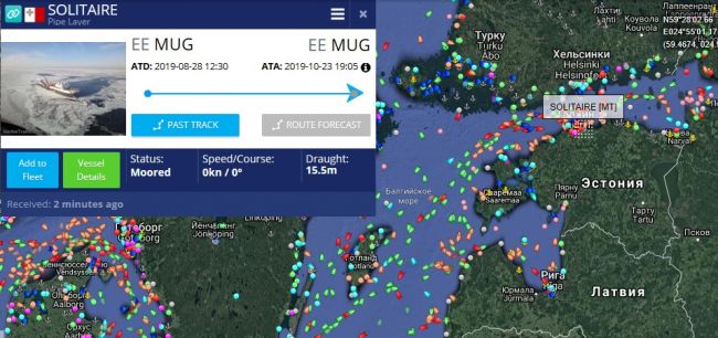 В эстонском порту Мууга тем временем находится трубоукладчик Solitaire, который также принадлежит швейцарской компании Allseas. Он укладывал шведский участок «Северного потока-2» и уже месяц находится на профилактическом обслуживании в эстонском порту.