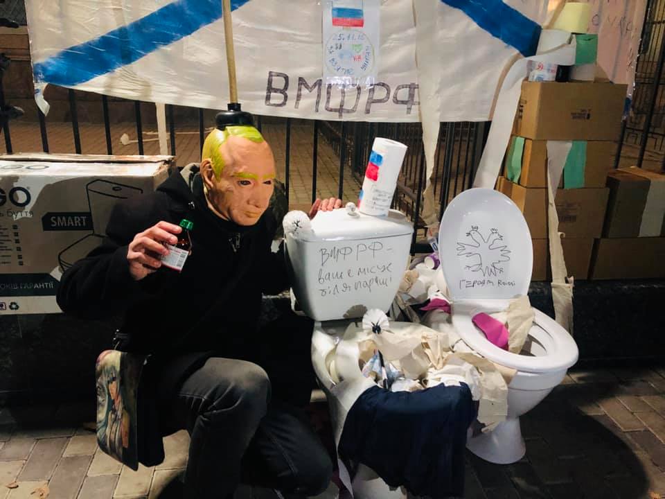 Зеленский позвонил Путину с требованиями по катерам без унитазов | Нацозабоченные с унитазами провели акцию у посольства РФ в годовщину позорной сдачи