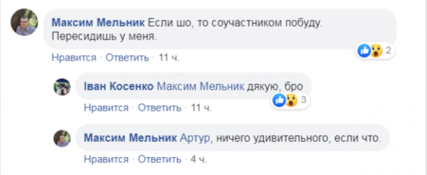 При этом единомышленники Косенко выразили в комментариях желание стать «соучастниками» и спрятать Костенко, если ему понадобится убежище.