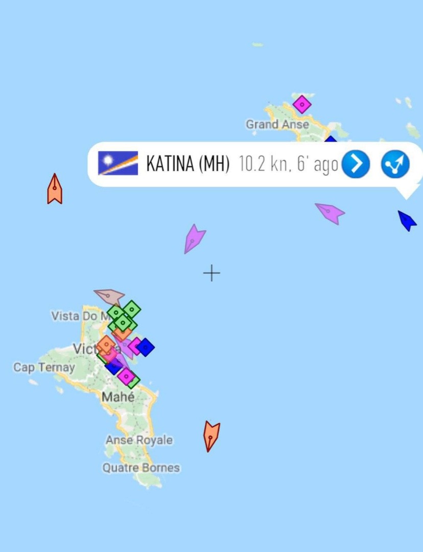 Каждый из вас может в режиме онлайн наблюдать за точной широтой и долготой движения яхты, её точными реквизитами, местами передвижения и остановками. Для этого закачайте в AppStore программу MarineTraffic и введите наименование KATINA.