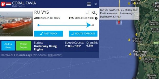 Сегодня, 8 января, в Литву прибудет первый в этом году груз российского СПГ. По данным навигационного портала Marinetraffic, на подходе к терминалу СПГ в Клайпеде находится газовоз Coral Favia. Он должен прибыть в порт днем.