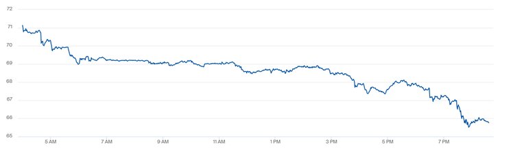 Если ранее цена Brent подскочила на 5% до $71,13 в первые часы после ракетного обстрела, то сейчас бочка европейского эталона стоит $65,75. Примерно такая же динамика цен наблюдается и на бирже в Нью-Йорке, но падение цен быстрее - американский эталон WTI после скачка на 4% подешевел на 5% до $59,80 за баррель во время выступления Трампа.
