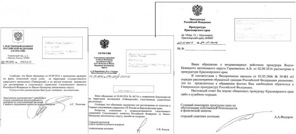 «Мы тогда направили в запрос в Следственный Комитет РФ. СКР перенаправил наш запрос в СУ по ЯНАО. Оно, в свою очередь, перенаправило его в СУ по Красноярскому краю. Оттуда мы не получили ничего, но, пришел ответ из Прокуратуры Красноярского края о том, что по данному вопросу нам следует обратиться в Генеральную Прокуратуру РФ, - рассказал нашему изданию сотрудник «Гринписа», занимавшийся этим делом. – Мы поняли, что дальнейшая переписка по этому вопросу бессмысленна и прекратили заниматься этим вопросом».