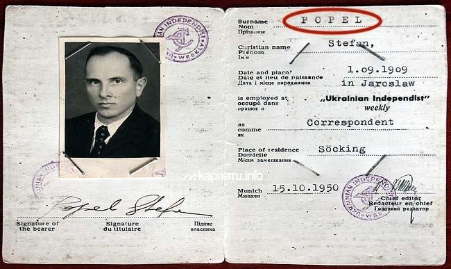«Смотрю, разворошил я бандеровцев своими изысканиями. Раз они еще здесь, хочу напомнить, что после войны немцы выдали Бандере фальшивый аусвайс на имя Штефан Попель (допускаю, что такую кличку ему присвоили в курировавшем его гестапо). И поясняю, что Popel на немецком означает «сопляк». По-моему, красноречиво свидетельствует об отношении хозяев к агенту, не правда ли?» – добавил эксперт. Источник