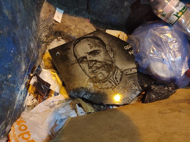 Между нацозабоченными и одесситами завязалась стычка, в результате которой нацисты сорвали табличку и выбросили в мусорный контейнер.