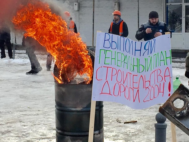 "Вдоль дороги установлены фундаментные блоки, ограждающие гостевые паркоместа. Чтобы не мешать проезду, предприниматели вдоль этих блоков, которые легко может подвинуть бульдозер, поставили имитацию протибульдозерних ежей, сваренные куски швеллеров, поставили бочки металлические, сейчас жгут дерево и шины", – рассказал Зайцев.