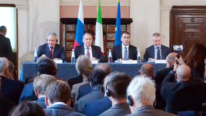 Министры иностранных дел России и Италии Сергей Лавров и Луиджи ди Майо, а также министры обороны Сергей Шойгу и Лоренцо Гуэрини встретились в формате "2+2" в Риме.
